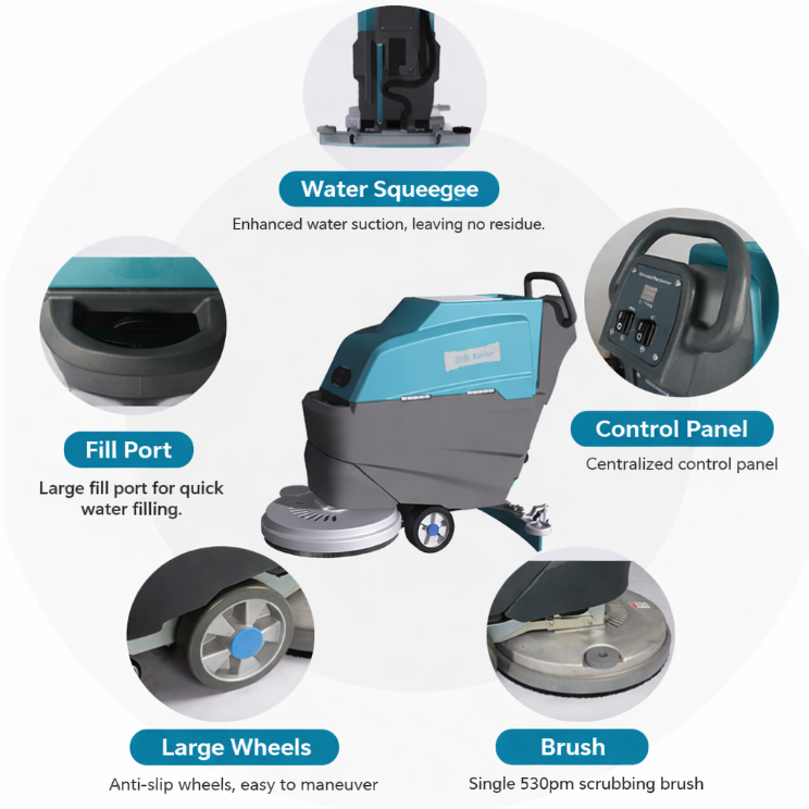 F2 Hand pushed floor scrubber, commercial industrial electric suction and mopping machine, factory workshop, warehouse, mopping machine for shopping malls