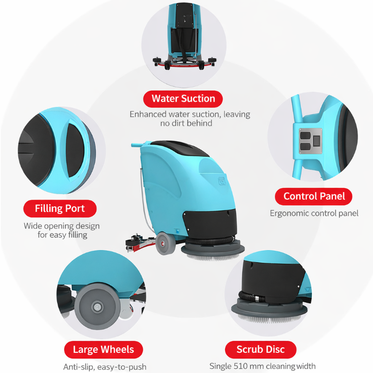 F1 Hand pushed floor scrubber, commercial industrial electric suction and mopping machine, factory workshop, warehouse, mopping machine for shopping malls